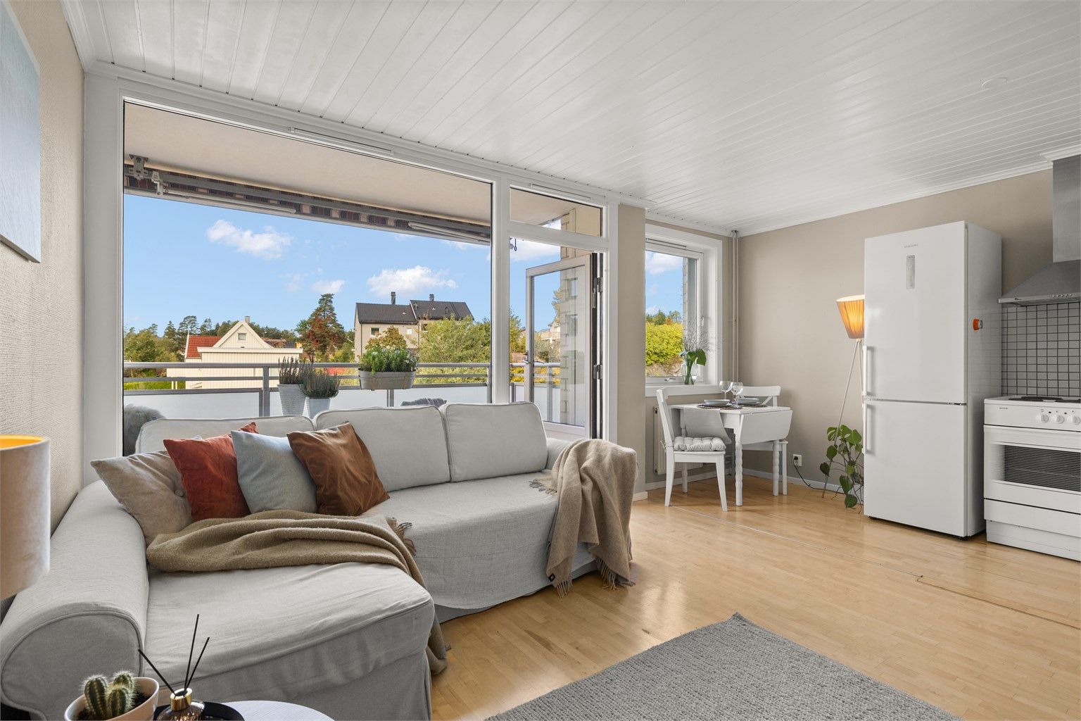 Arealeffektiv selveierleilighet med attraktiv beliggenhet i fine omgivelser på Frysja! Leiligheten ligger i byggets 8. etasje med heis og byr på en smart planløsning med stue og åpen kjøkkenløsning, sovealkove og utgang til solrik vestvendt balkong. Badet ble oppgradert i 2020, og flere overflater er malt i nyere tid. Leiligheten disponerer både bod og skapseksjon, og har tilgang til fellesvaskeri og sykkelbod.