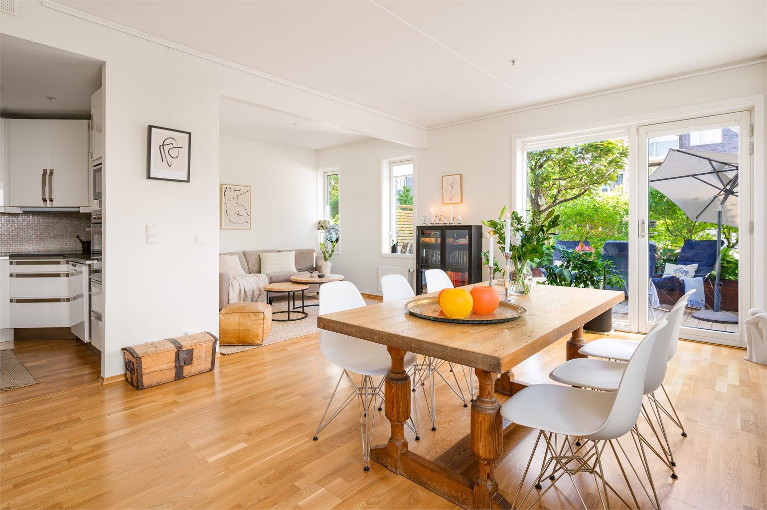 Barnevennlig og lys 4-roms hjørneleilighet i hyggelig sameie. Egen inngang. To terrasser + felles takterrasse med utsikt!