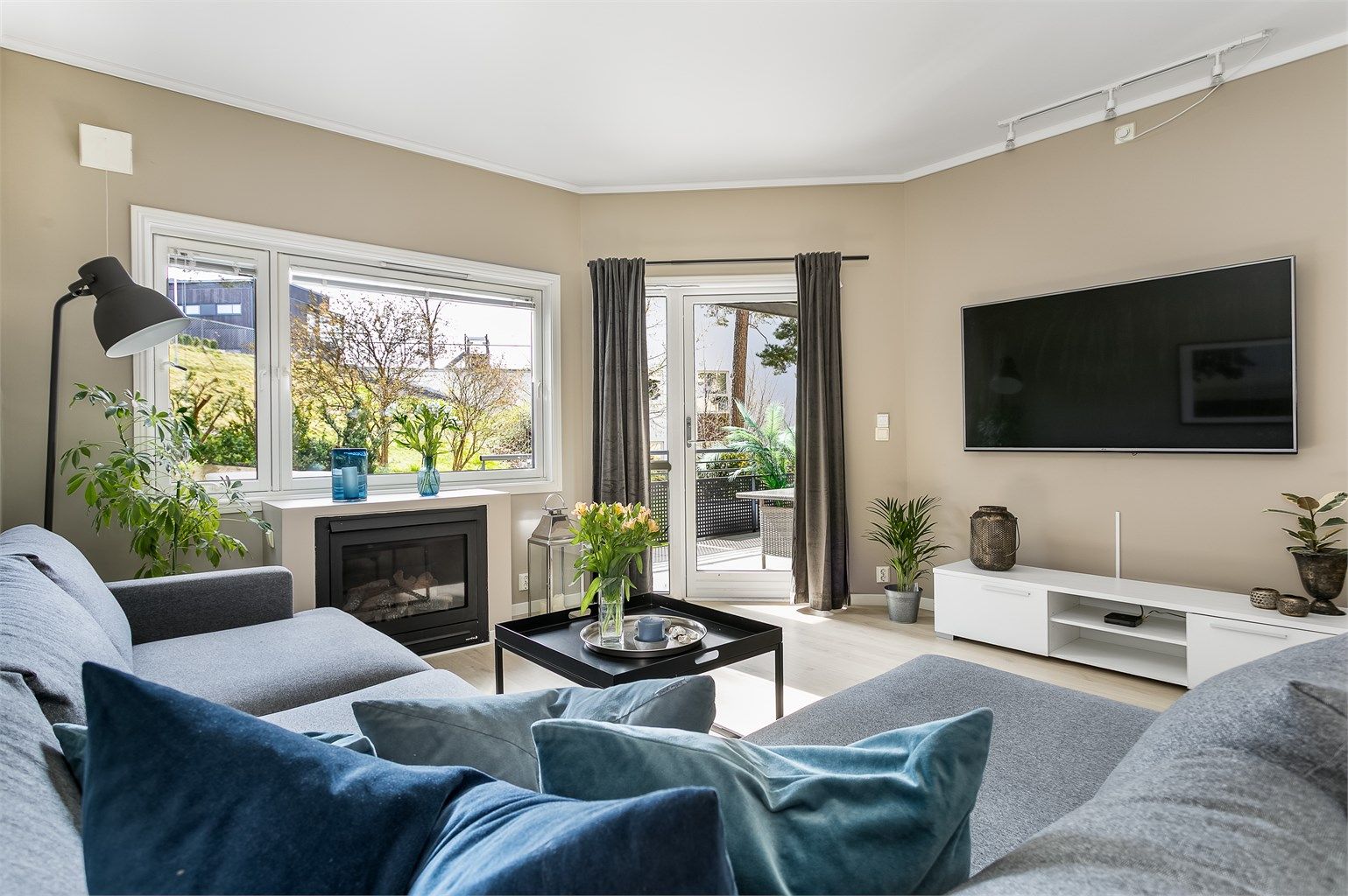 Oppusset 3-roms med ekstra uteareal; solfylt platting og terrasse med utsikt. Lekkert kjøkken og bad fra 2022. Garasje.