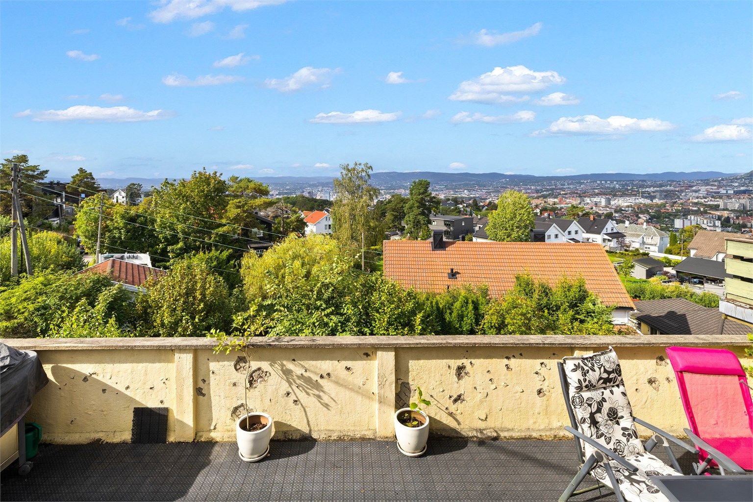 En halvpart av vertikaldelt tomannsbolig med et innvendig bruksareal på 162 kvm. Eiendommen ligger høyt og fritt, med en av Oslos flotteste utsikter hvor både Slottet, Holmenkollen og sentrum kan nytes fra stue og balkong. Boligen er oppført i 1950 og fremstår med betydelig oppgraderingsbehov, men gir en sjelden mulighet til å forme et hjem med særpreg i et attraktivt og rolig område. Planløsningen rommer fire soverom, romslig stue med balkong, kjøkken, bad, vaskekjeller og kjellerstue. Her får du store arealer, praktiske romløsninger og en unik utsikt - et oppussingsprosjekt med stort potensial.