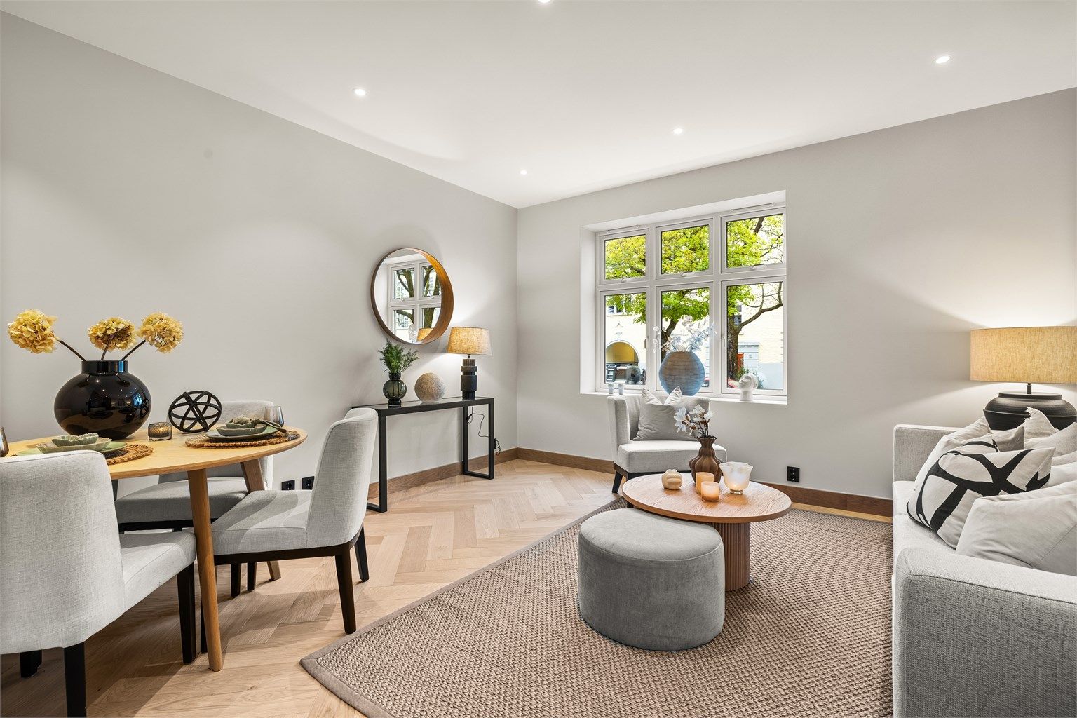 Leiligheten er nyoppusset i 2025, helt ned til murveggene og utvidet med en stor, innredet kjeller som har to ekstra soverom, kjellerstue, et delikat bad og garderoberom/bod. I første etasje ligger en stue med lekker peisovn, et stilrent kjøkken fra Rotpunkt Skøyen med integrerte hvitevarer fra Miele, samt et toalettrom og en hovedsuite med soverom og bad. Det er fiskebensparkett fra Boen i alle rom, samt app-styrt (Plejd) gulvvarme og downlights.
