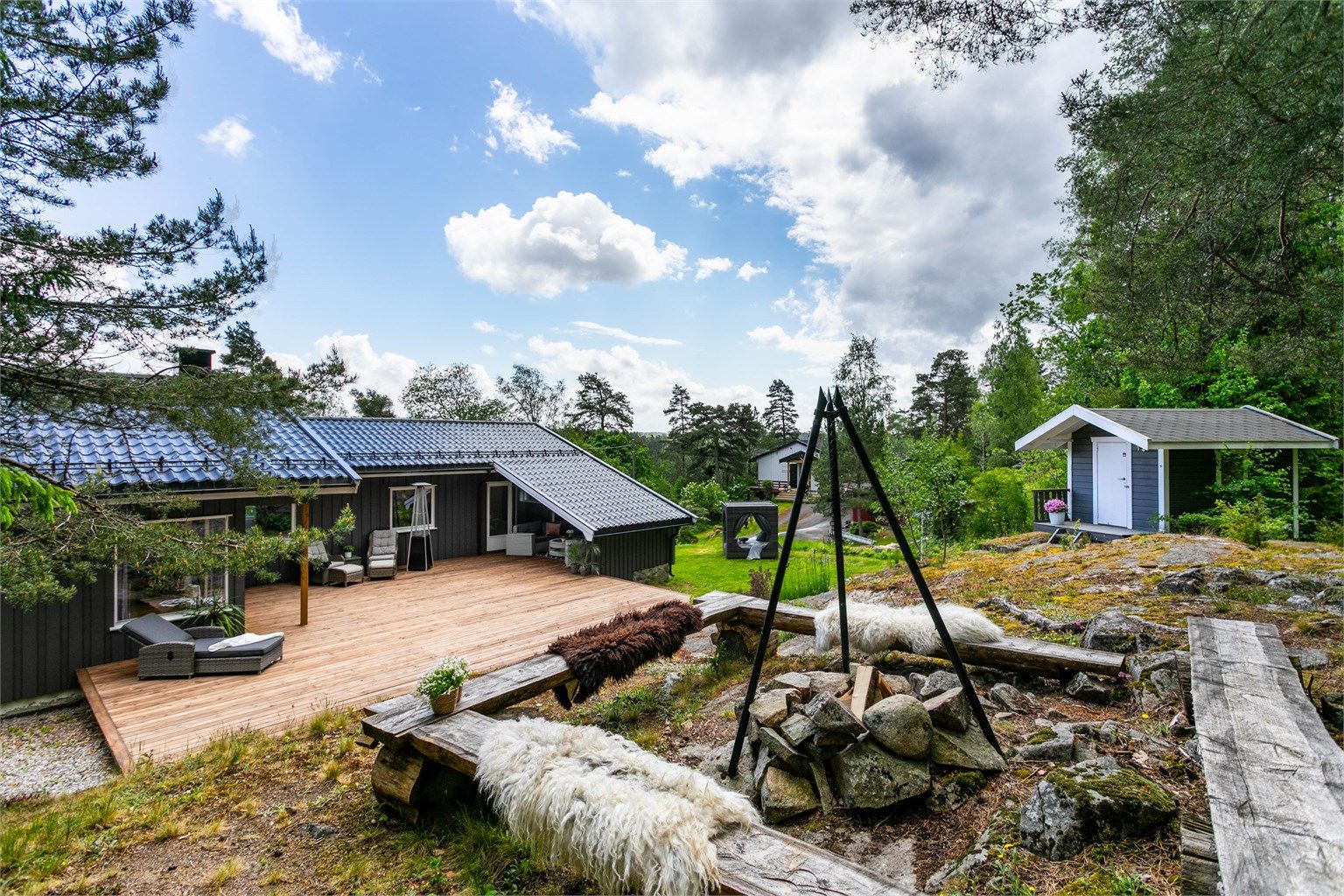 Familievennlig enebolig, solrikt og usjenert ved skogkanten. Over 1,7 mål eiendom. Kun 40 min. fra Oslo.
