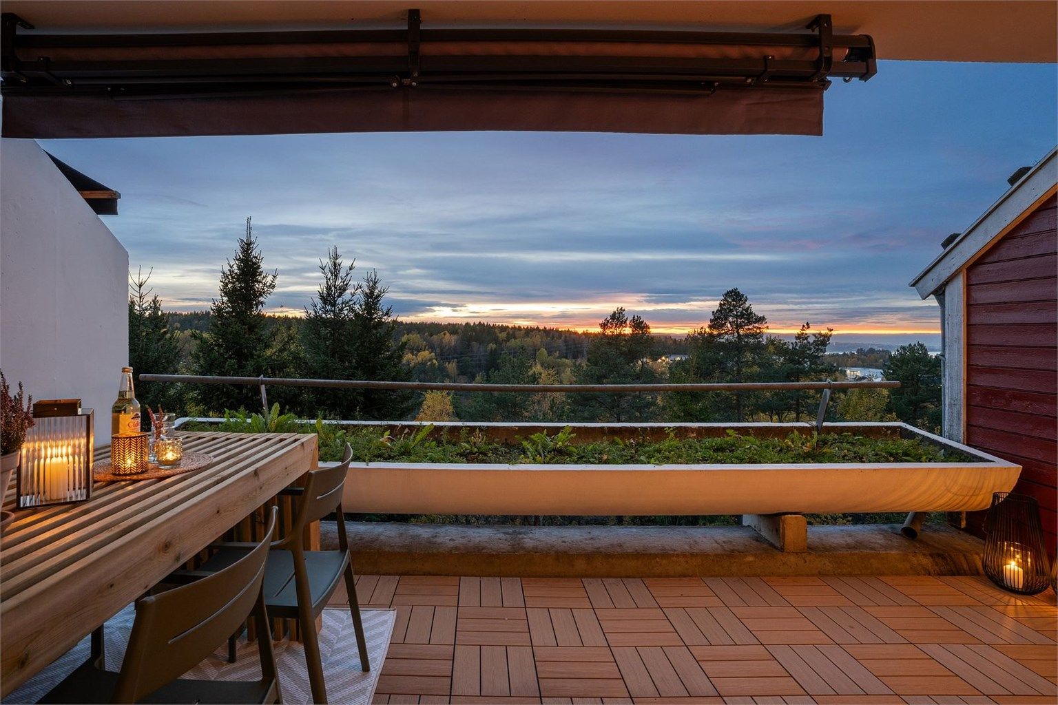 Velkommen til Blakkens vei 106. En lys og solrik terrasseleilighet med utgang til stor solrik terrasse på 15 kvm med flott utsikt over fjorden og åsdragene.