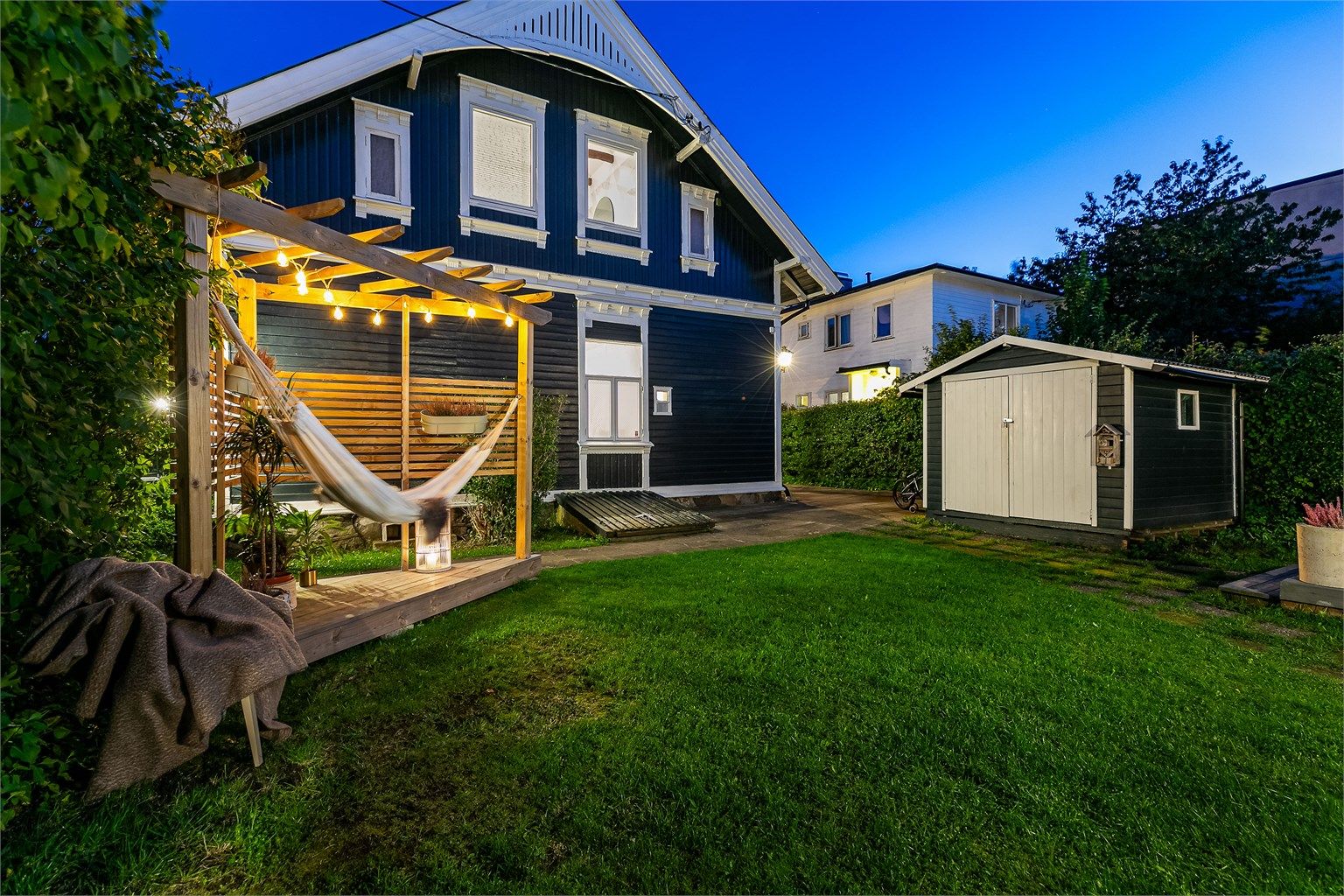 Enebolig fra 1901, påbygget ca 60-tallet. Støpt plate. Grunnmur av naturstein og murkonstruksjoner. Yttervegger og etasjeskillere av
