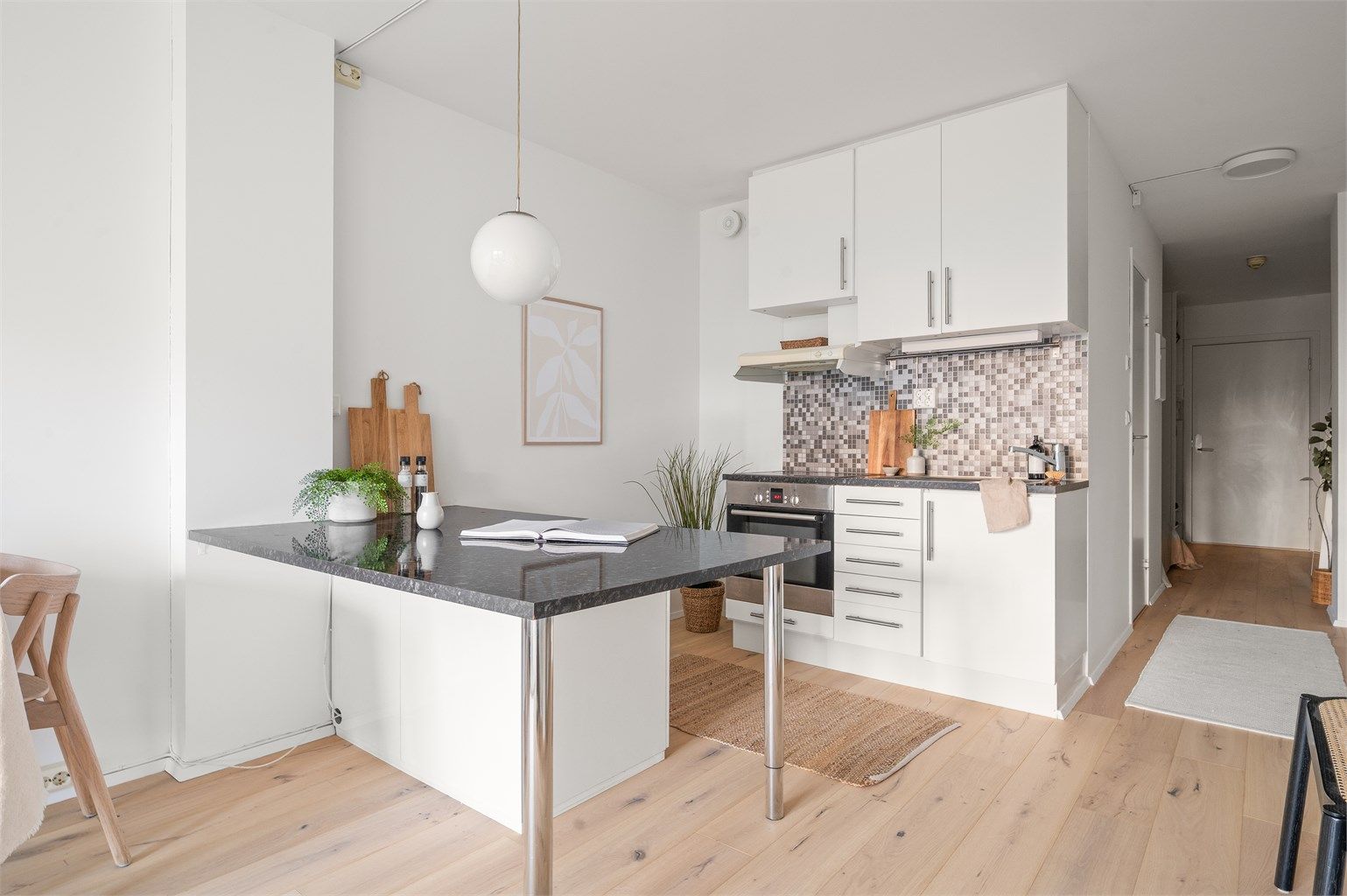 Planløsningen består av åpen stue- og kjøkkenløsning, entré, innredet rom/sovesone med garderobe, samt et romslig bad. Stuen har store dobbeltvinduer med dyp karm og sitteplass, og herlig utsyn.