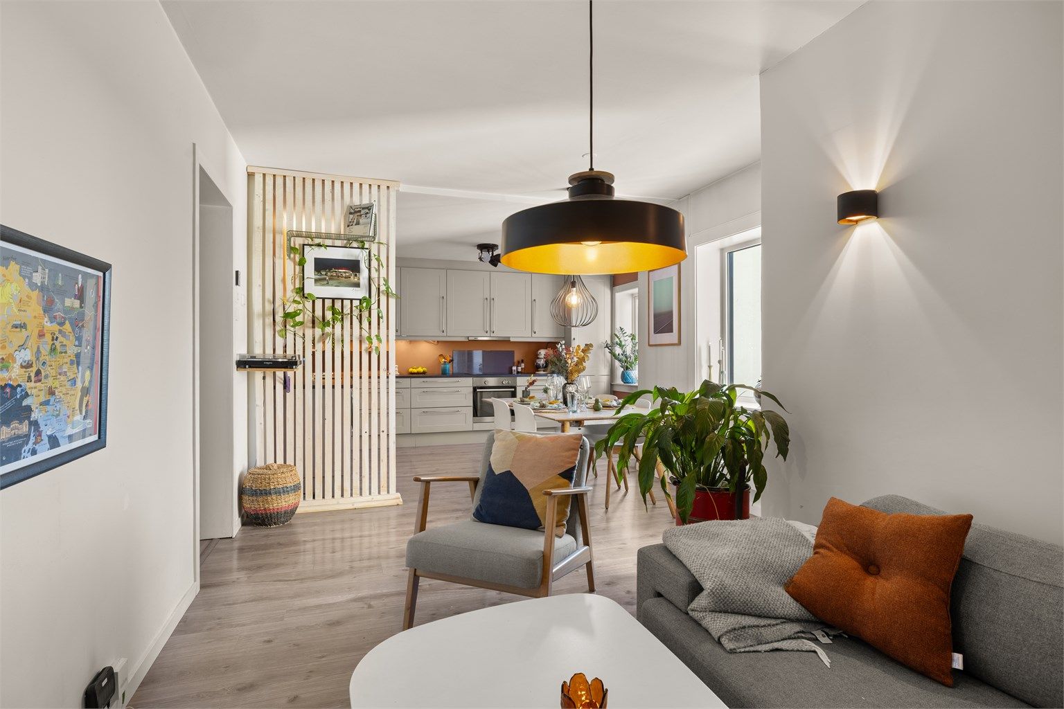 Velkommen til Knud Øyens vei 13C, en solrik og pen toppleilighet uten gjenboere og med utsikt over frodig nærområde og med noe fjordutsikt. En gjennomgående leilighet med en god planløsning som inneholder bl.a. 3 soverom, stue og spisestue med åpen kjøkkenløsning og peisovn, store vindusflater mot vest og vestvendt balkong på 12 kvm med utsikt. Leiligheten er jevnlig påkostet siden 2017. Rikelig med lagringsplass i 3 ekstra boder. Parkeringsplasser på felles gårdsplass til benyttelse for sameiet. Tilbaketrukket og skjermet beliggenhet i et barnevennlig og frodig boområde med nærhet til et rikt fritidstilbud, kollektivtransport og servicetilbud.