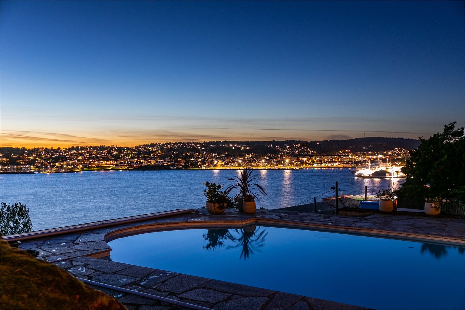 Enestående villa med sterk egenart, tegnet av arkitekt Konrad Halvorsen. Fantastisk fjordutsikt. Swim-out basseng.