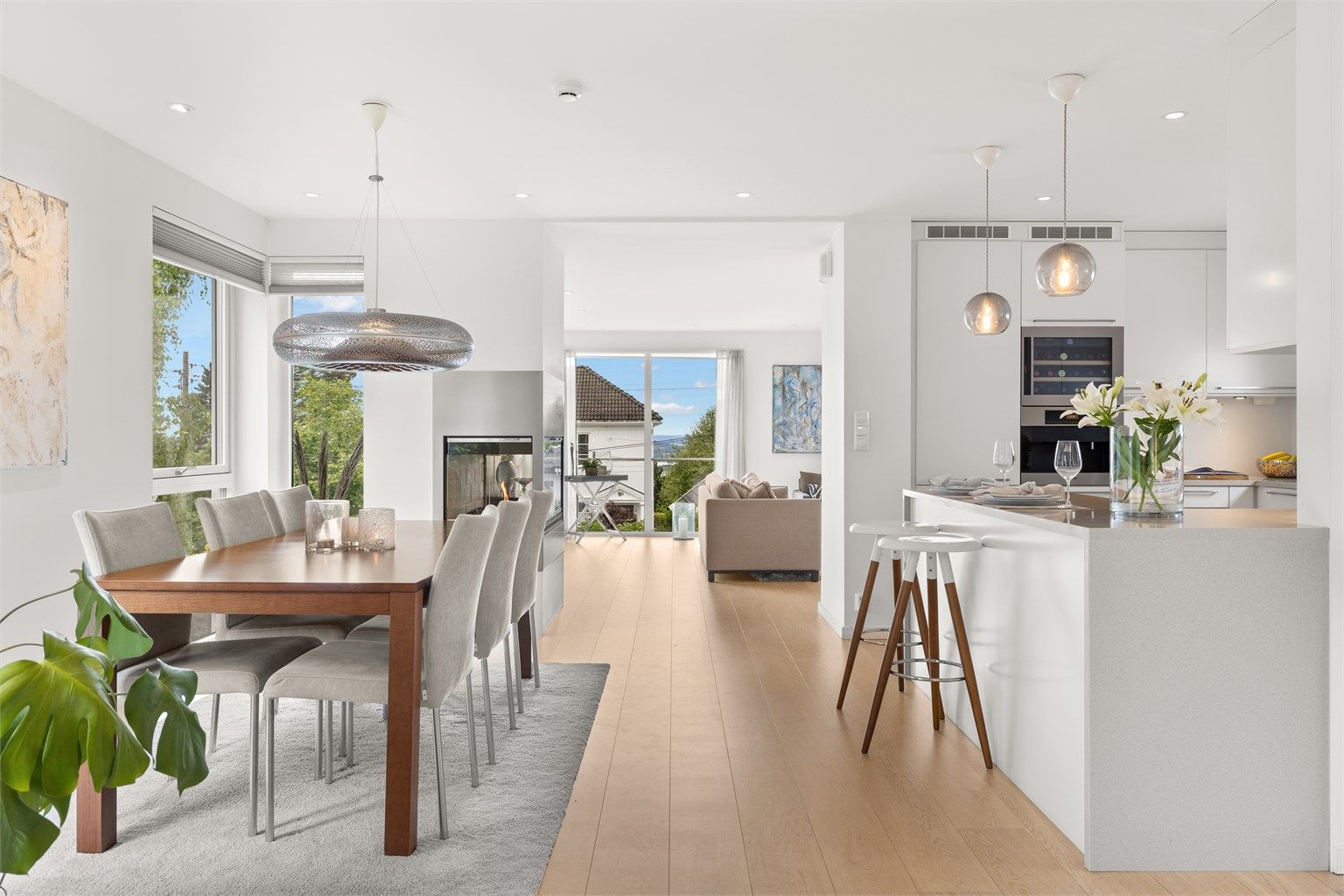 En lys og flott etasje med romslige og åpne rom og store glassflater som gir mye lys og flott utsyn. Gulvvarme i hele etasjen og downlights i himlinger.