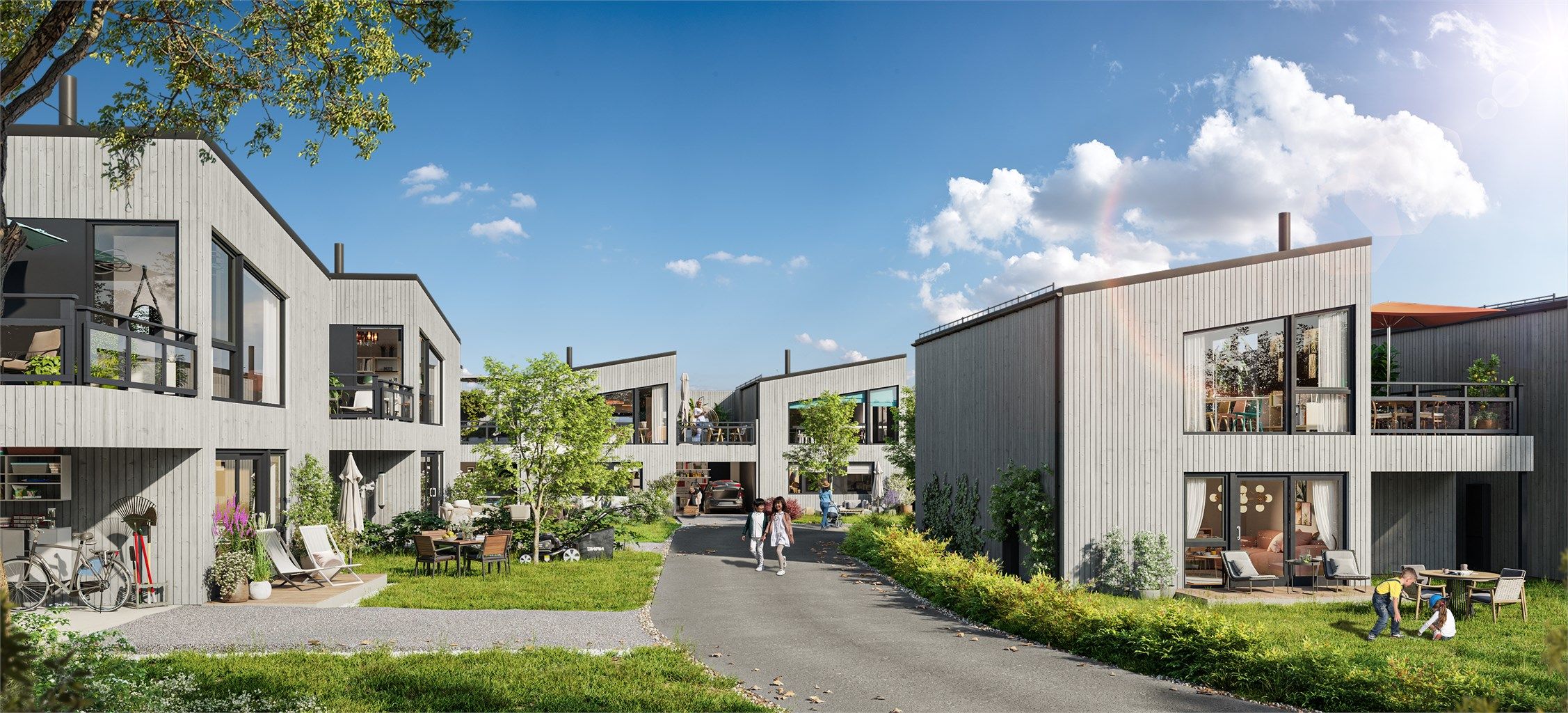 Det kan forekomme avvik fra oppgitt areal på boliger, rom og terrasser. Arealer på de enkelte rom kan ikke summeres til boligenes totalareal. Det gjøres oppmerksom på at skisser, perspektiver, utomhusplan, plantegninger og bilder i prospektet kun er av illustrativ karakter, og inneholder detaljer som farger, innredninger, møblering, beplantning og arkitektoniske detaljer mv. som ikke inngår i leveransen. Plantegninger og illustrasjoner som viser ulike innredningsløsninger er ment som illustrasjoner for mulige løsninger. Disse løsningene inngår ikke i leveransen. Tegningene i prospektet bør ikke benyttes som grunnlag for nøyaktig møbelstilling.