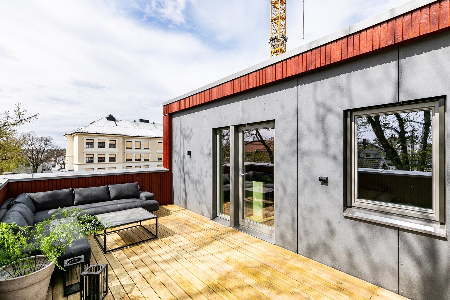 Tak bygges som kompakttak. Takflater tekkes med folie- eller papptekking.
