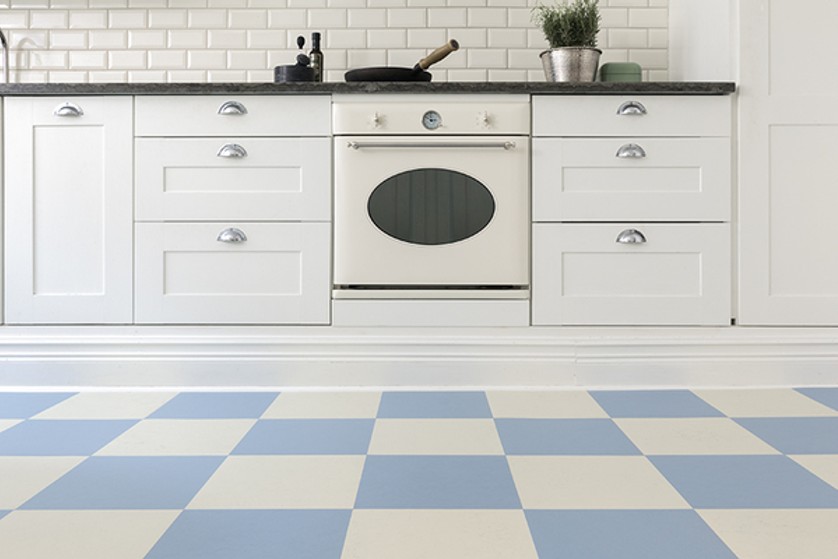 Mamoleum Click består av linoleum øverst og har en kjerne av myk kork. (Gulvspesialisten)